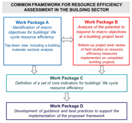 Die Europäische Kommission (Mitteilung COM(2014) 445 vom 01.07.2014, Zum effizienten Ressourceneinsatz im Gebäudesektor) hatte angekündigt, in Zusammenarbeit mit den einzelnen Interessengruppen einen Rahmen zu entwickeln, der die Kernindikatoren sowie die zugrundeliegenden Methoden umfasst, die bei der Bewertung der Umweltverträglichkeit von Gebäuden während ihres gesamten Lebenszyklus verwendet werden.