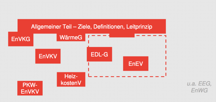 „Über die laufende Zusammenführung von EnEG, EnEV und EEWärmeG hinaus könnte ein Energieeffizienzgesetz mit verbindlichen Zielen auf Grundlage des Energiekonzepts, Leitprinzipien und einem Abbau von Rechtshemmnissen einen geeigneten Rahmen schaffen. Nicht intendiert sind die bloße Zusammenführung bestehender Fachgesetze sowie Eingriffe in Investitionsentscheidungen privater Verbraucher und Unternehmen.“