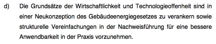 Wenn das GEG also wohl keine Verschärfungen und keine wesentlichen inhaltlichen Änderungen bringen soll, sondern neben einer Zusammenlegung von Regelungsquellen und Vereinfachung (zur strukturellen Neukonzeption & Vereinheitlichung schon hier) nur einzelne Neuregelungen, welche sind das? Voraussichtlich dürfte sich u.a. das Folgende im GEG durchsetzen: