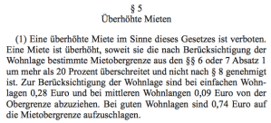 Vorbehaltlich eines Härtefalles ist eine Miete verboten, welche die Mietobergrenze um mehr als 20 % überschreitet. Allerdings gibt es zur Bestimmung der Mietobergrenze Abzüge und Aufschläge je nach Wohnlage: