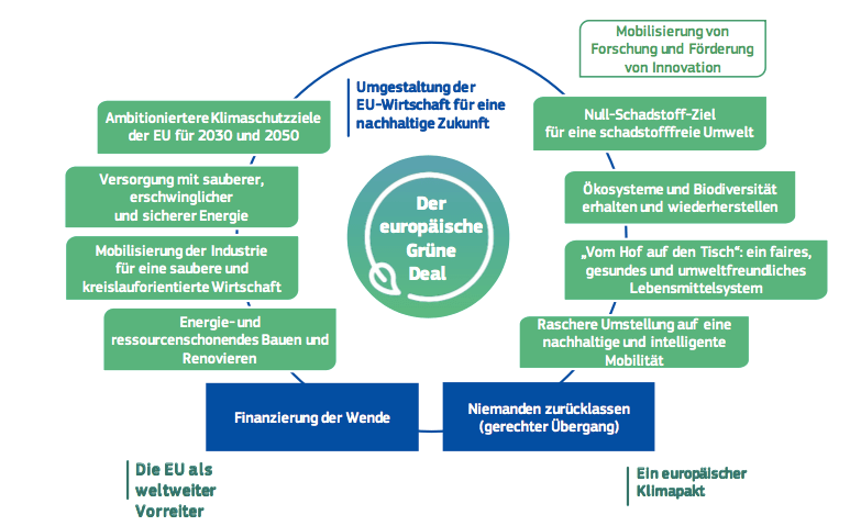 Die EU als Ganze ist in der Lage, ihre Wirtschaft und Gesellschaft umzugestalten, um sie auf einen nachhaltigeren Weg zu bringen. (…) Mit dem europäischen Grünen Deal wird der in allen Sektoren erforderliche Übergang beschleunigt und gefördert.