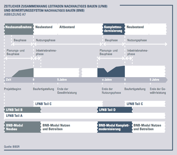 Die Broschüre setzt auf dem Leitfaden Nachhaltiges Bauen, Zukunftsfähiges Planen, Bauen und Betreiben von Gebäuden, 3. Auflage 2019 (LFNB) auf, der die allgemeinen Grundlagen und Methoden sowie konkrete Qualitätsvorgaben für Bundesbauten regelt und als Arbeitshilfe über den Lebenszyklus eines Gebäudes einsetzbar ist. Er ist für Bundesbauten verpflichtend, soll sich aber darüber hinaus auch für die Anwendung auf Bauprojekte der Länder und Kommunen oder der Privatwirtschaft eignen.