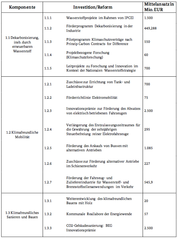 - strukturelle Reformen für und massive Investitionen in den Aufbau einer leistungsfähigen Wasserstoff-Wirtschaft,