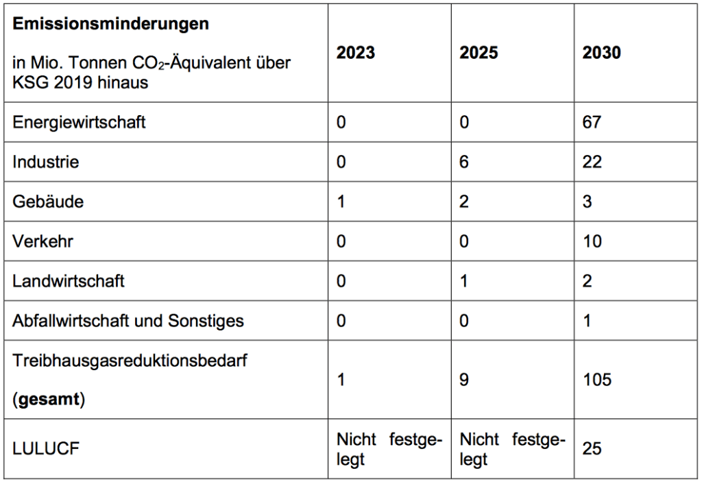 - Für die Jahre von 2031 bis 2040 werden sektorübergreifende jährliche Minderungsziele festgelegt.