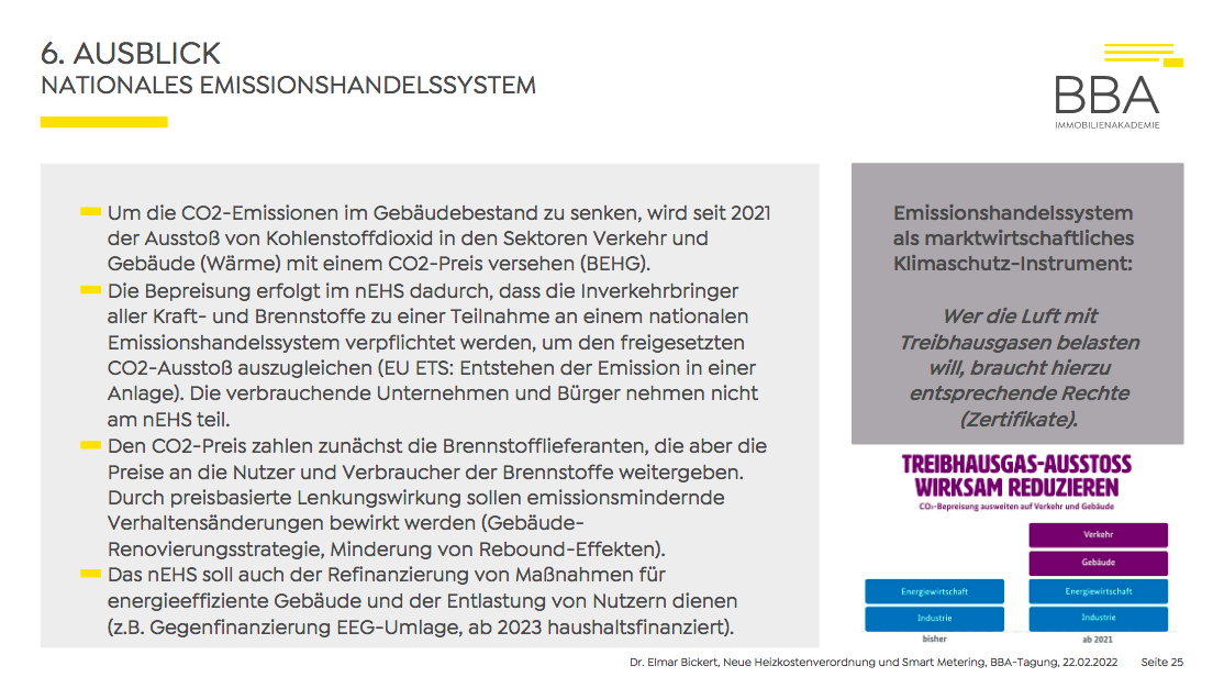 Im Kern geht es stets um die Lenkungs- und Anreizwirkung der CO2-Bepreisung, welche richtigerweise nicht nur auf Investitions-/Sanierungsentscheidungen, sondern zumindest auch auf Nutzungsänderungen abzielt. Die Lenkungswirkung des Emissionshandelssystems ist jedenfalls auch auf den Endverbraucher/Mieter gerichtet (emissionsmindernde Nutzungsänderungen). Eine Verkürzung auf die Anlagenmodernisierung (Vermieter) ist damit kaum vereinbar und auch nicht damit, dass gerade die energiepreissteigernde Wirkung der CO2-Preise als Mittel definiert wird, Rebound-Effekte im Gebäudebereich einzudämmen.