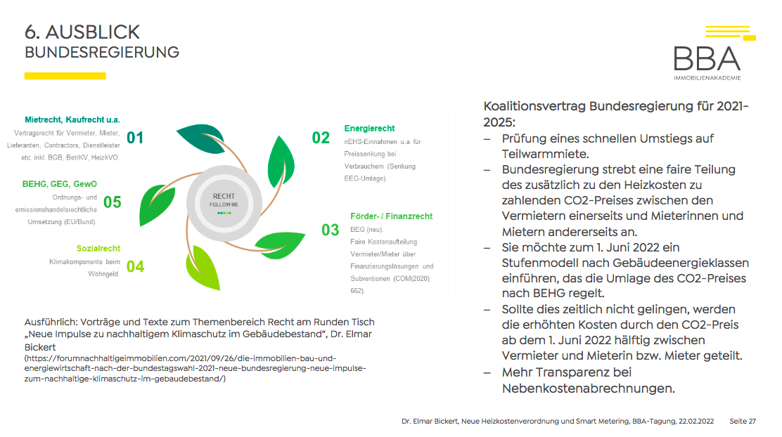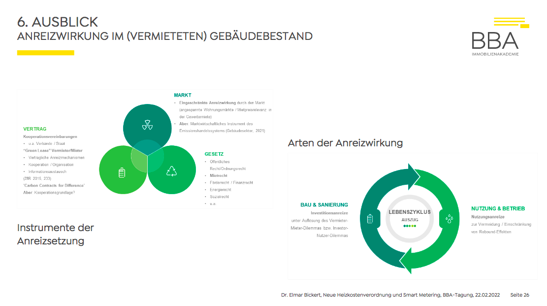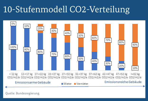 Dies hat auch die Bundesregierung erkannt. Am 2. April 2022 haben sich der Bundeswirtschaftsminister, die Bundesbauministerin und der Bundesjustizminister auf eine Teilung der CO2-Kosten zwischen Vermietern und Mietern sowohl bei den Wohn- als auch Nichtwohngebäuden geeinigt, die für sich das Attribut fair in Anspruch nimmt. Investitions-/Sanierungsanreize werden ebenso aufgegriffen wie Nutzungsanreize: