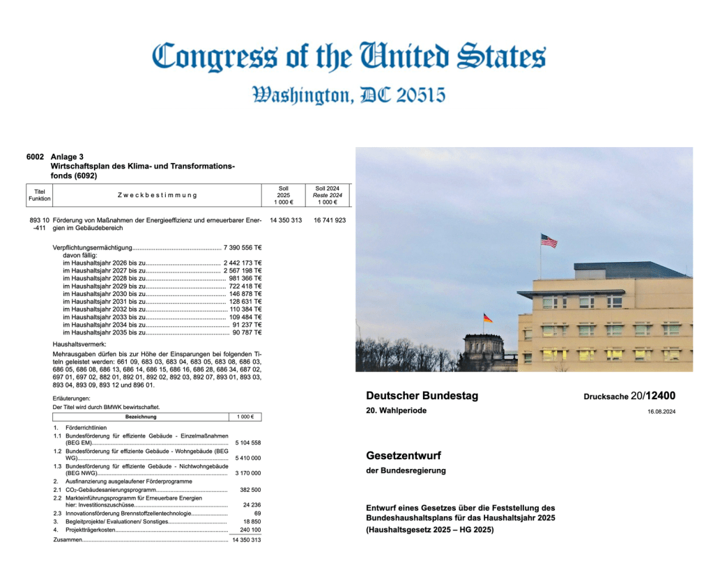 Ausgerechnet hierzulande hat die vorstehende Warnung eine ungeahnte Relevanz erhalten. Die Bundesregierung hat gerade ihren Haushaltsplan 2025 vorgelegt, der vorsieht, dass die Ausgaben aus dem Klima- und Transformationsfonds (KTF) um mehr als die Hälfte schrumpfen sollen. Selbst die Förderung von Maßnahmen der Energieeffizienz und erneuerbarer Energien im Gebäudebereich (BEG-Förderung) wird nun um ganze 2,39 Milliarden Euro gegenüber 2024 gekürzt – bei unveränderten Forderungen nach höherer Sanierungsrate und Sanierungstiefe im Bestand und trotz der anstehenden Anforderungen der EPBD. Überhaupt keine Mittel sind für die Zuschüsse zum Kauf von E-Autos vorgesehen und mit Blick auf die Mobilitätswende werden aiuch die Zuschüsse zur Errichtung von Tank- und Ladeinfrastruktur gekürzt.