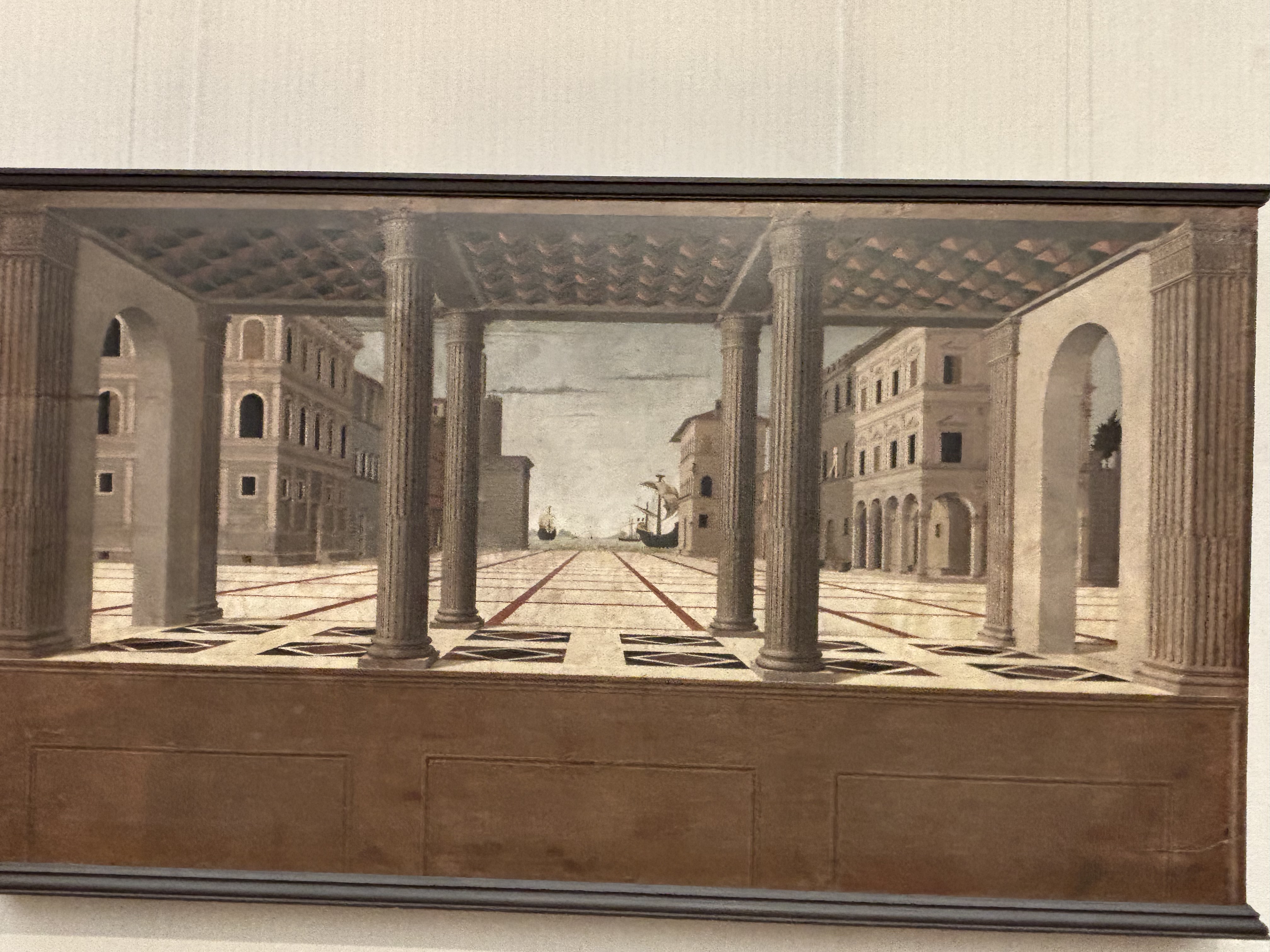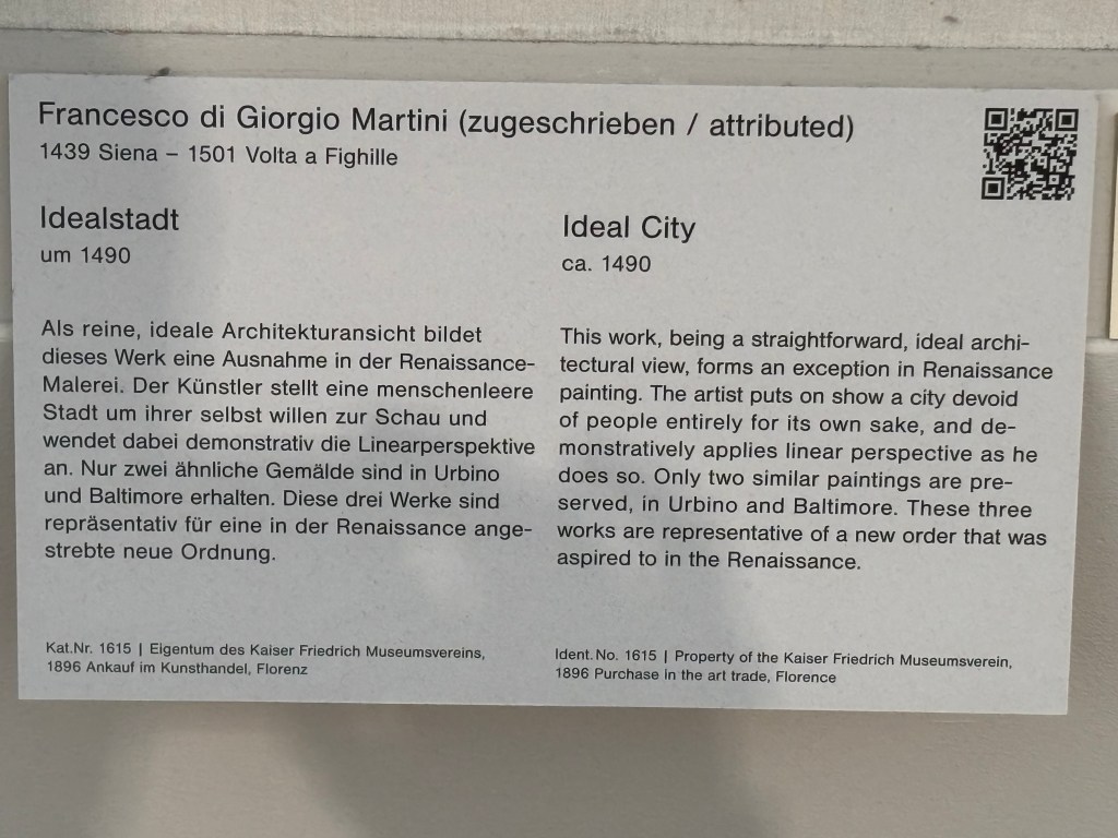 Meine persönliche Geschichte dazu beginnt bei einem kürzlichen Besuch in der Berliner Gemäldegalerie. Fasziniert stand ich vor dem Renaissance-Gemälde „Idealstadt“ (Bild): Eine kunstvoll versteinerte Stadt, ihrer selbst willen dargetan, ganz ohne Menschen und strikt getrennt von der Natur. Linearperspektive als Programm.